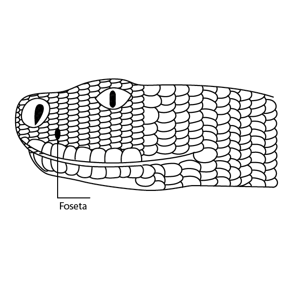 | Tiene fosa termo-receptora (orificio entre nariz y ojo). | No tiene fosa termo-receptora. |